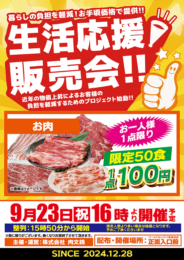 【グランドバトル】9/23家計応援企画 お肉の販売会開催予定