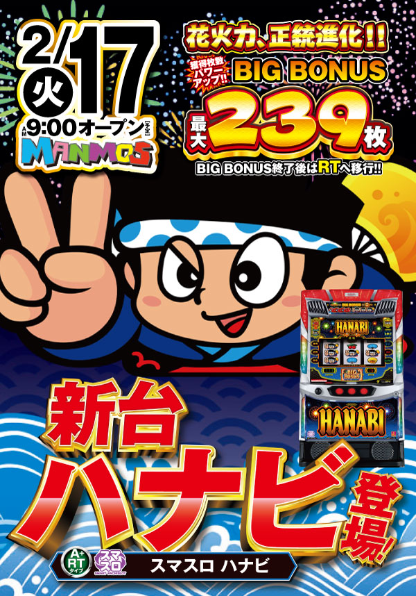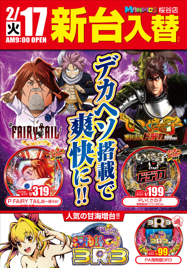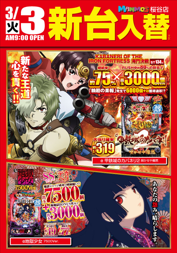 【本日】 3/3新台入替! 一部スロット10時オープン!