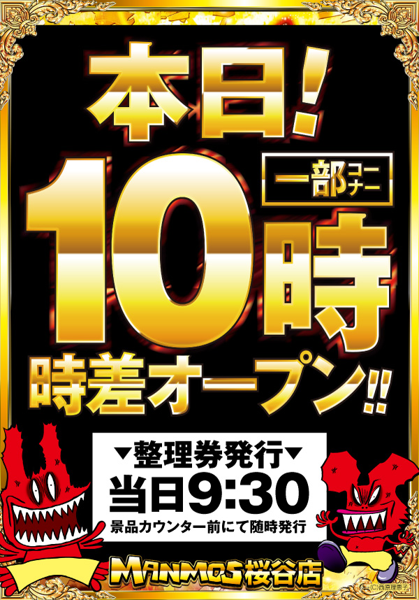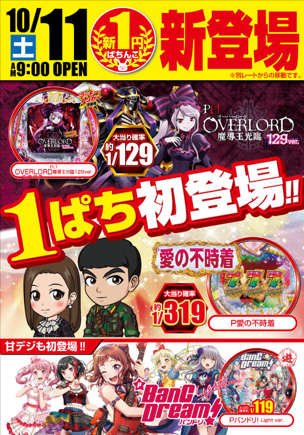 本日10/10金曜日!一部スマスロコーナー10時オープン予定!