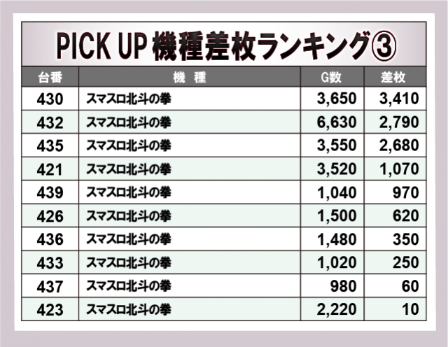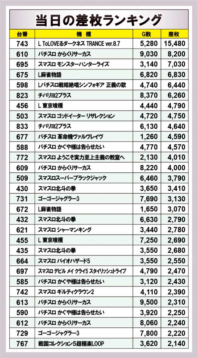 ※差枚数順に掲載しています。