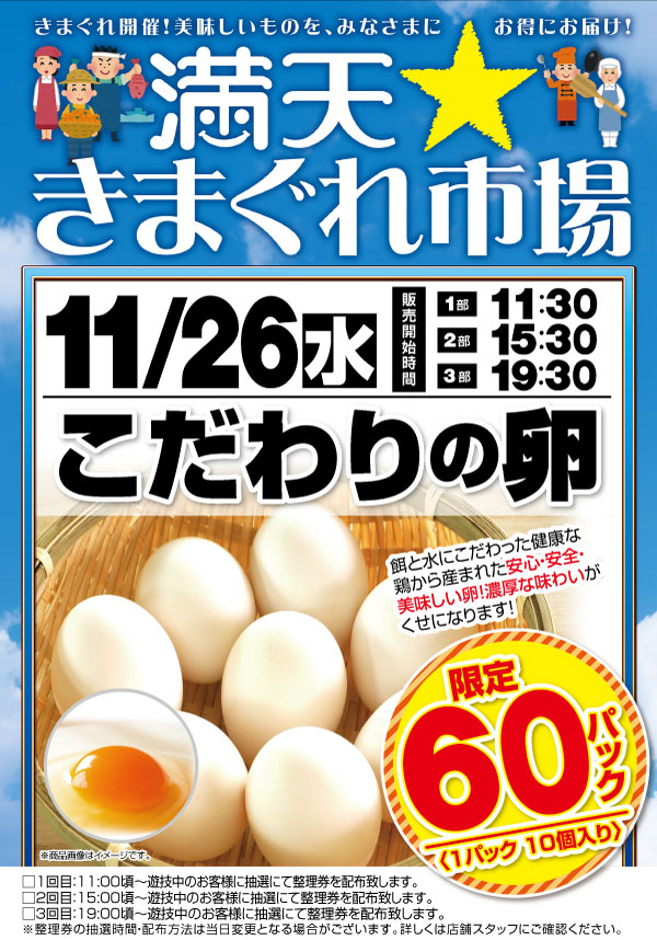 本日11月26日【満天きまぐれ市場】こだわりのたまご販売会!
