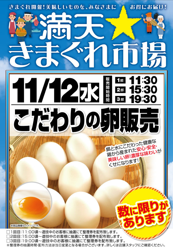 本日11月12日【満天きまぐれ市場】こだわりたまご販売会!
