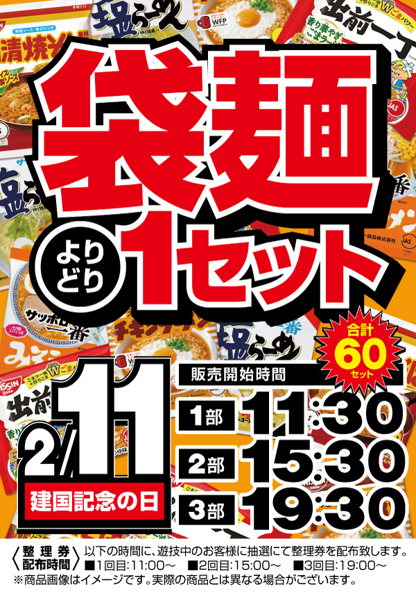 本日◆人気の袋麺 抽選販売!◆1袋5食入りを60袋販売!