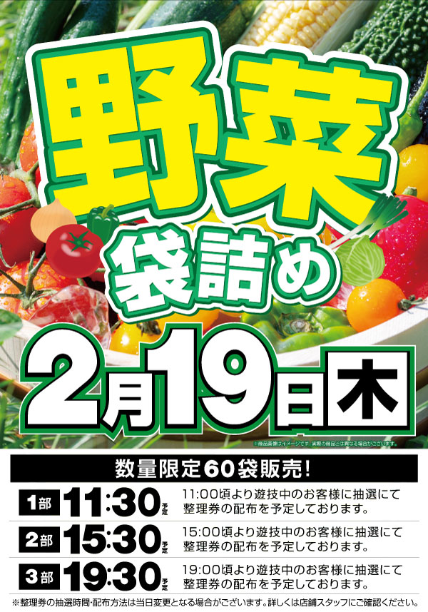 ★3月はジャグラー徹底推し!★本日3月5日袋詰め野菜の販売!