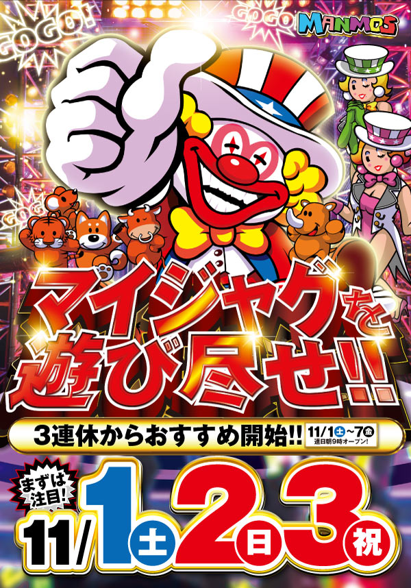 ★マイジャグを遊び尽くせ!!★11/1~11/7おすすめ!!