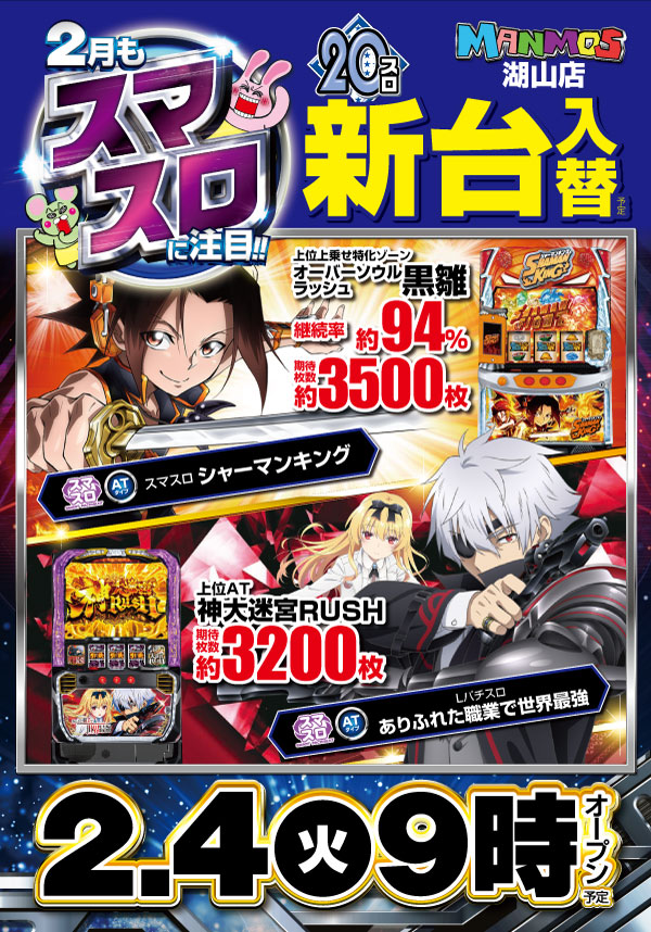 ★明日新台入替★2月もスマスロに注目!最新台4機種登場!