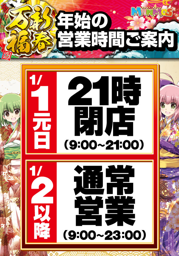 ★マンモス湖山店★年末年始の営業時間のお知らせ★
