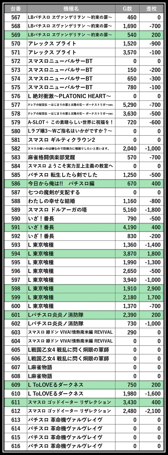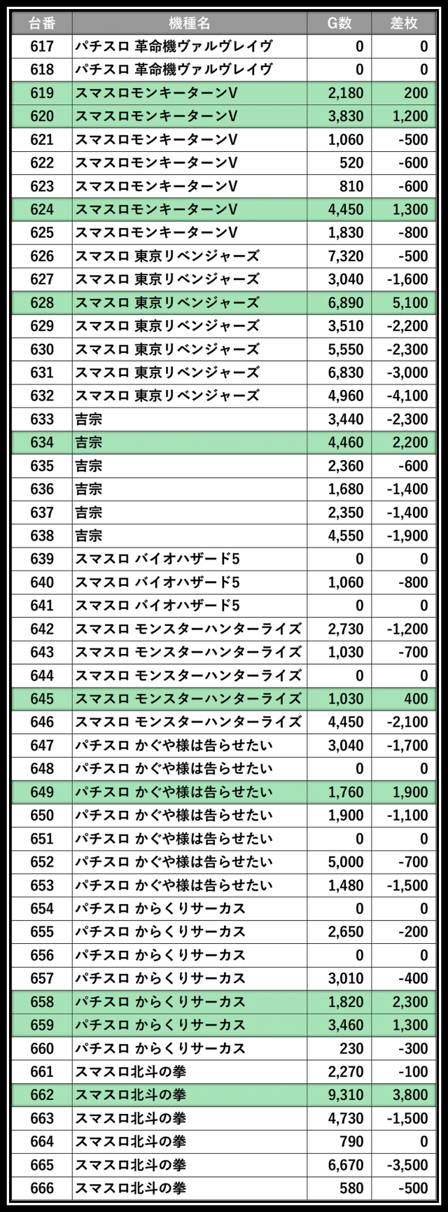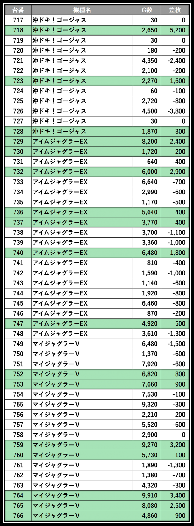※差枚数順に掲載しています