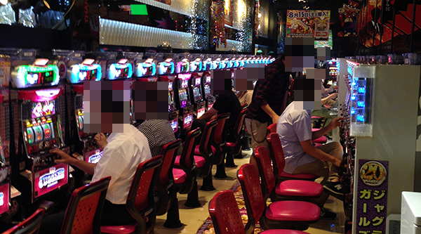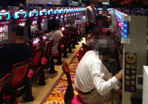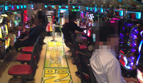 ジャグラーコーナーでは、空き台の方が少ないといったほどに多数のプレイヤーが遊技をおこなっていた。なかにはシンプルな告知を堪能しているようなプレイヤーも見受けられ、ひときわ活気が感じられるシマとなっていた。