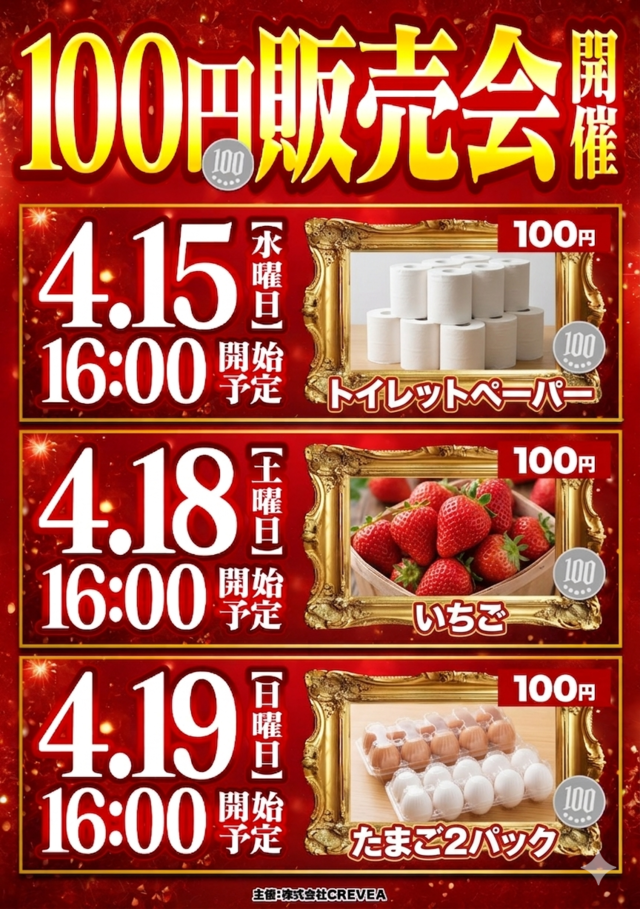 明日!100円販売会です!たまご2P!
