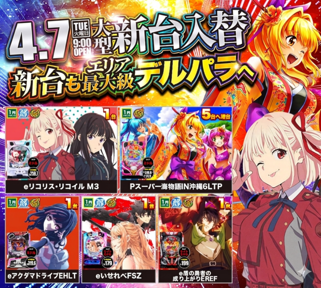 7日!デルパラ新台入替9時開店!