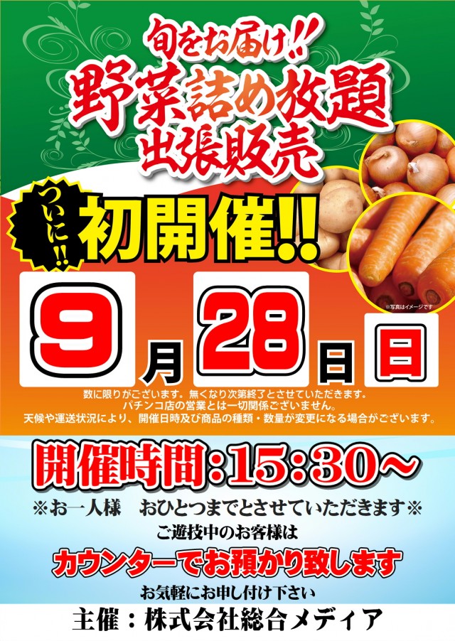 本日野菜詰め放題の出張販売開催♬ ポイント交換会最終日!