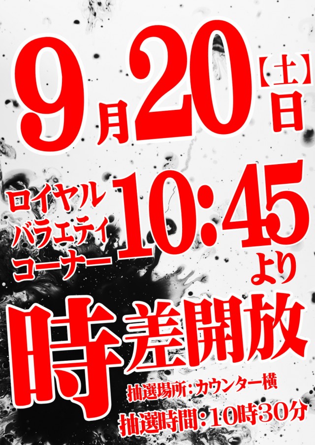 明日10:30より時差開放の抽選あります!全館9時オープン!