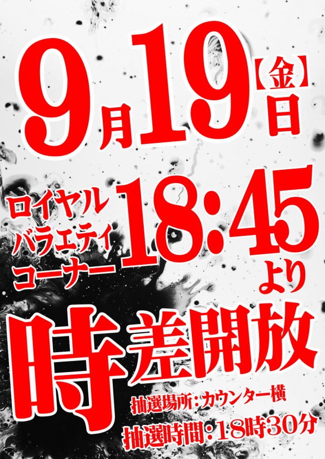 本日18:30より時差開放の抽選あります!全館9時オープン!