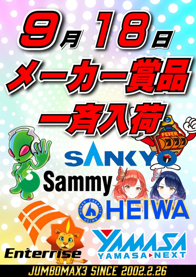 本日メーカー賞品一斉入荷♬ 全館9時オープン!