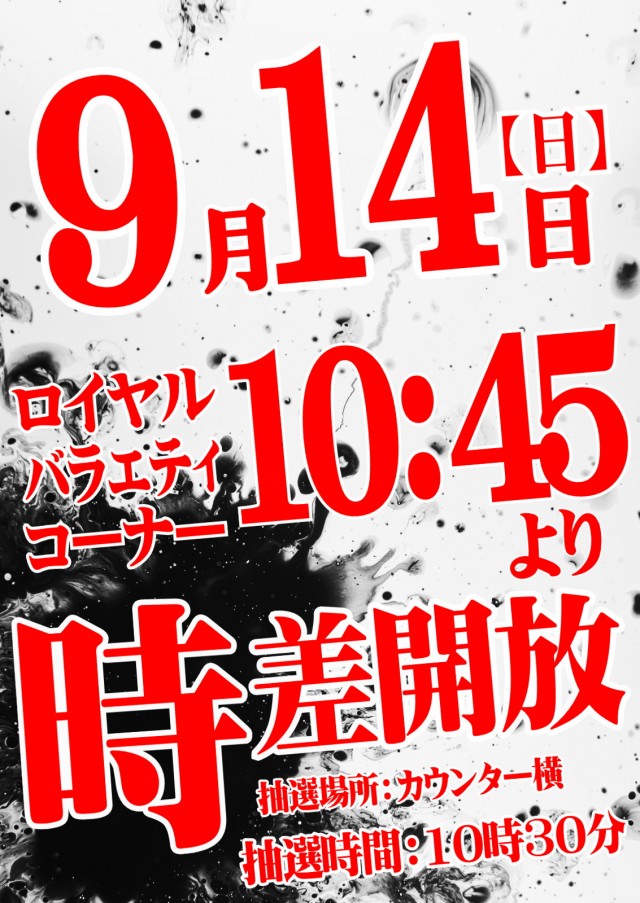 明日18:30より時差開放の抽選あります!全館9時オープン!
