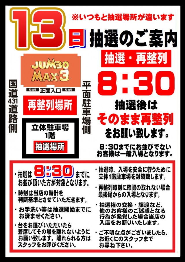 明日は創業日! 抽選時間・抽選場所をご確認下さい♬