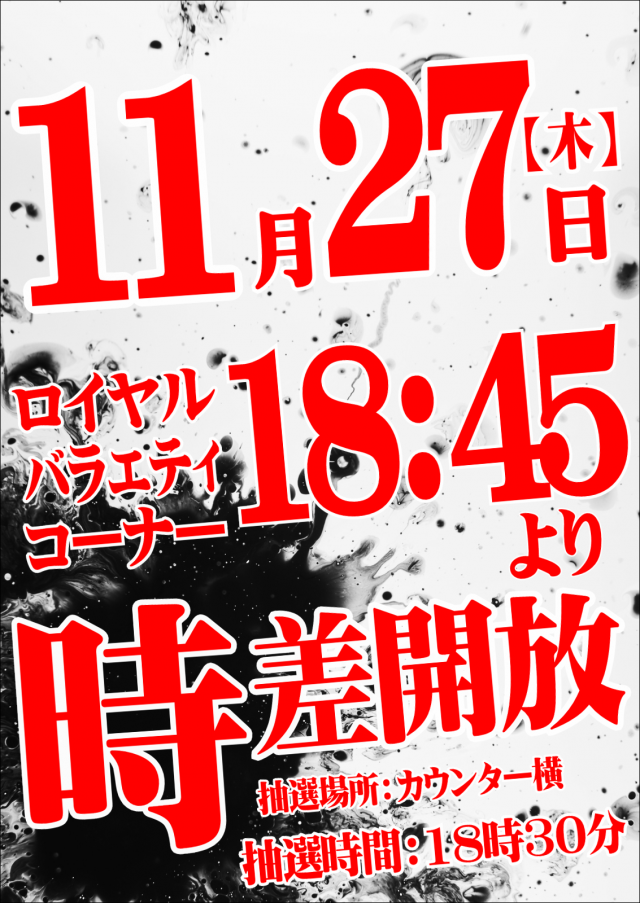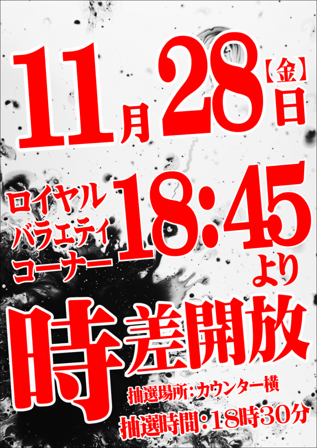明日時差開放の抽選あります!告知をご確認ください♬