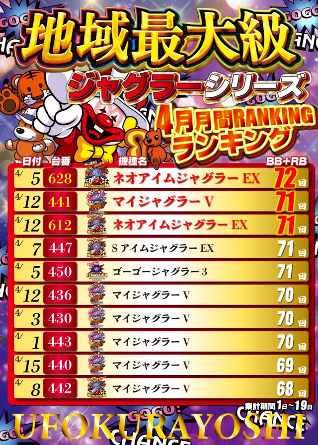 1位 4月18日(土) 2位 3月28日(土) 3位 4月12日(日)