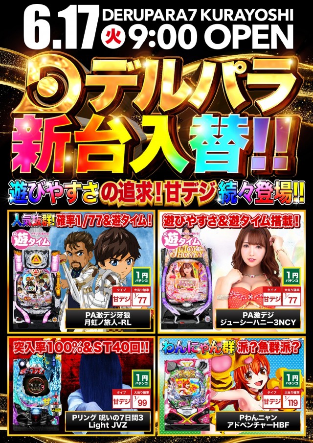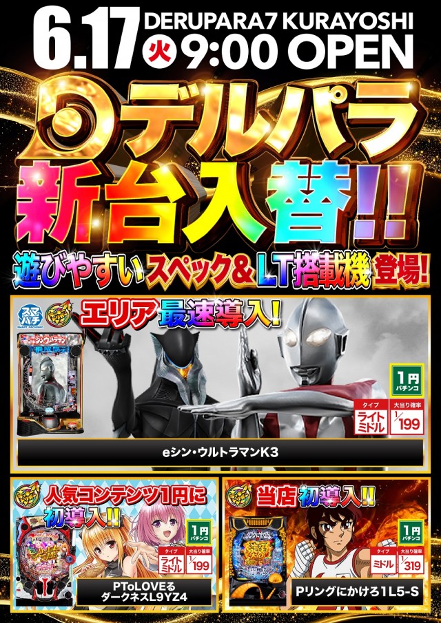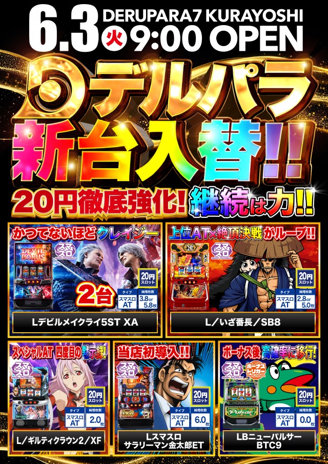 6/17(火)倉吉店のチカラ!!新台入替!!