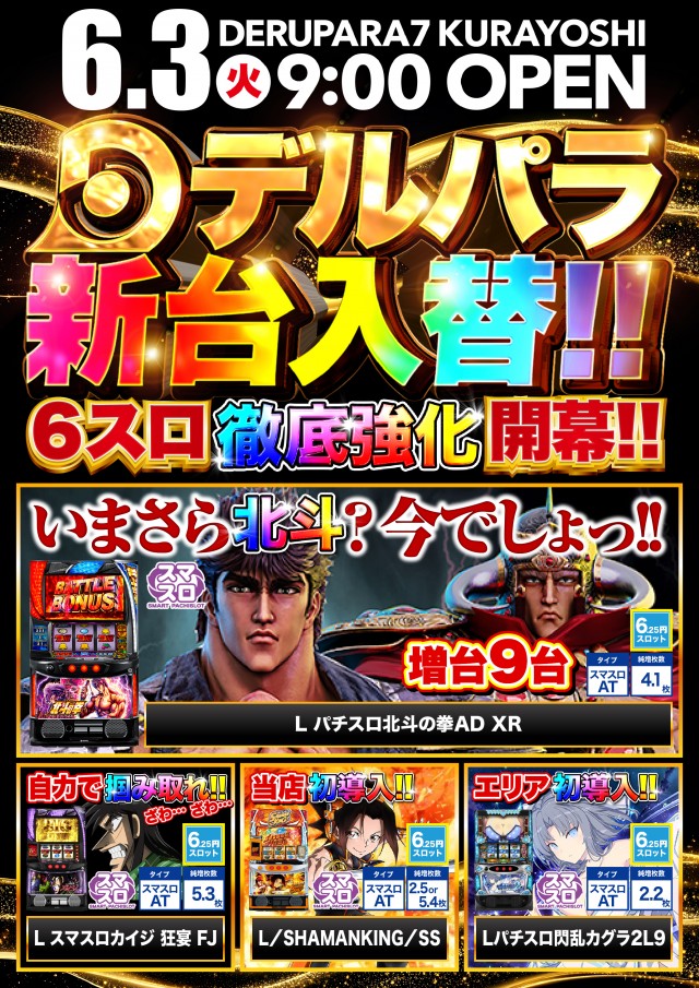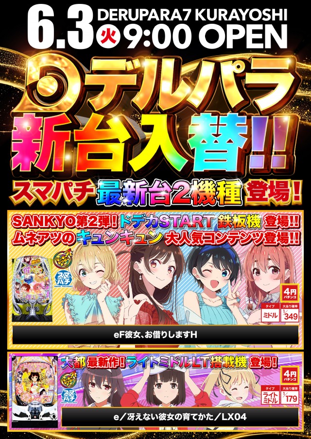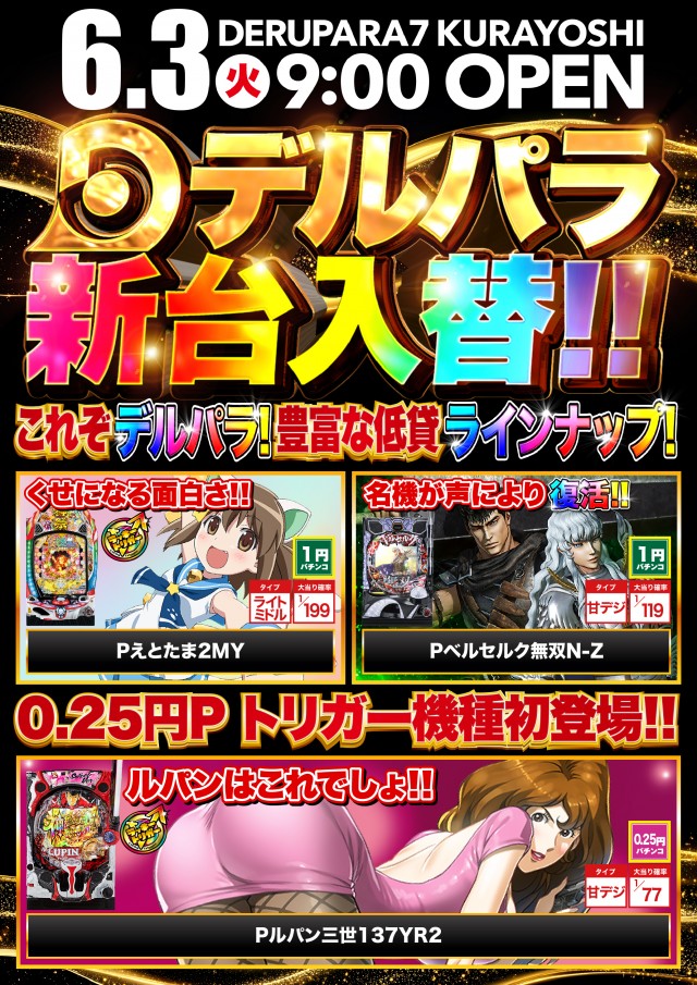 6/3(火)朝9時開店 大型新台入替!!
