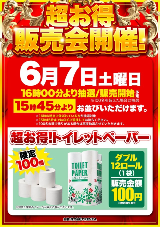 6/7(土)朝9時開店 超お得販売会 開催!!