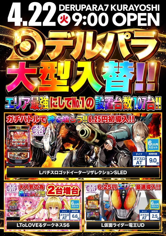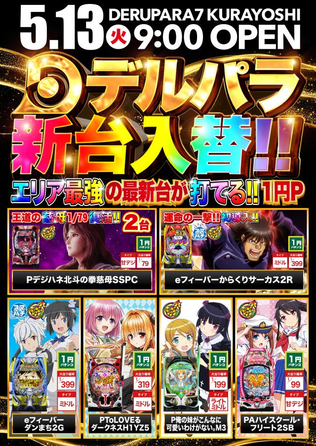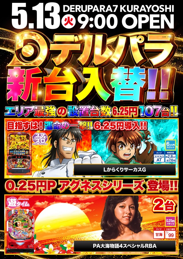 5/27(火)朝9時開店!!デルパラ7倉吉店のチカラ