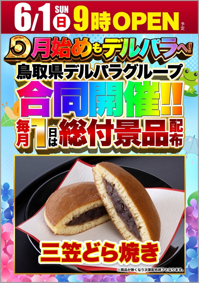 6/1(土)月始めもデルパラへ!!総付景品プレゼント!!
