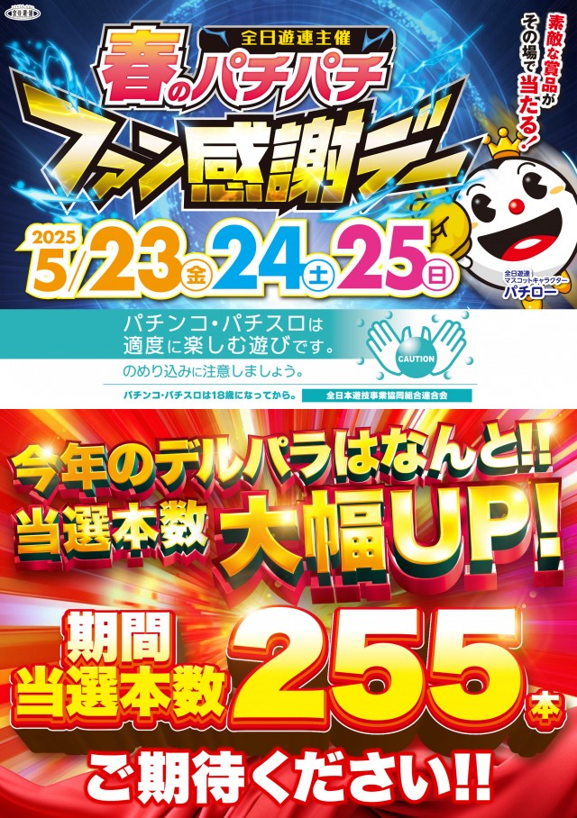 5/23(金)朝9時開店!!春のパチパチファン感謝デー!!