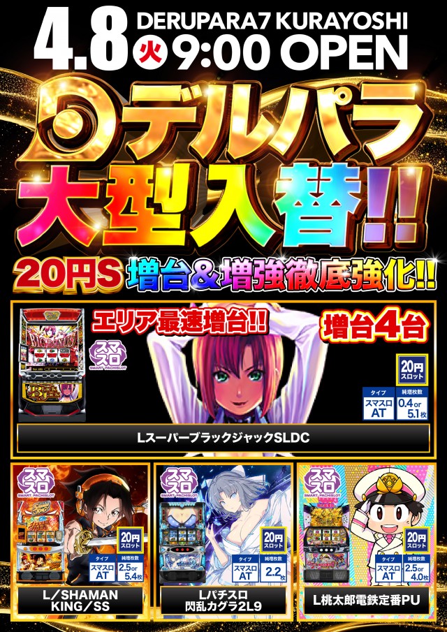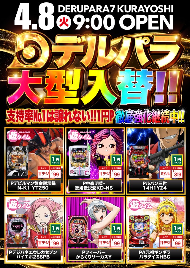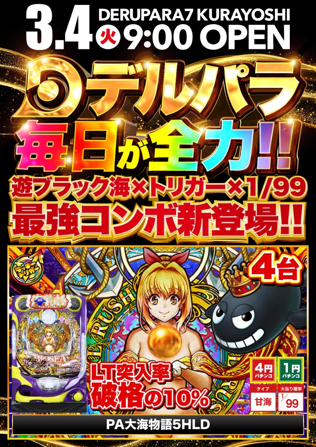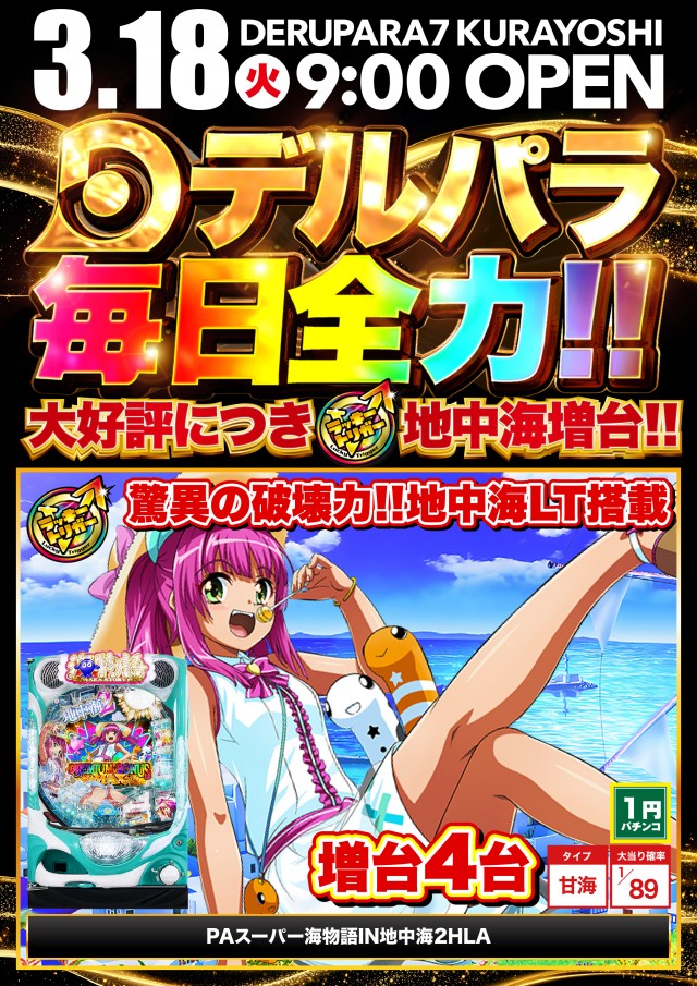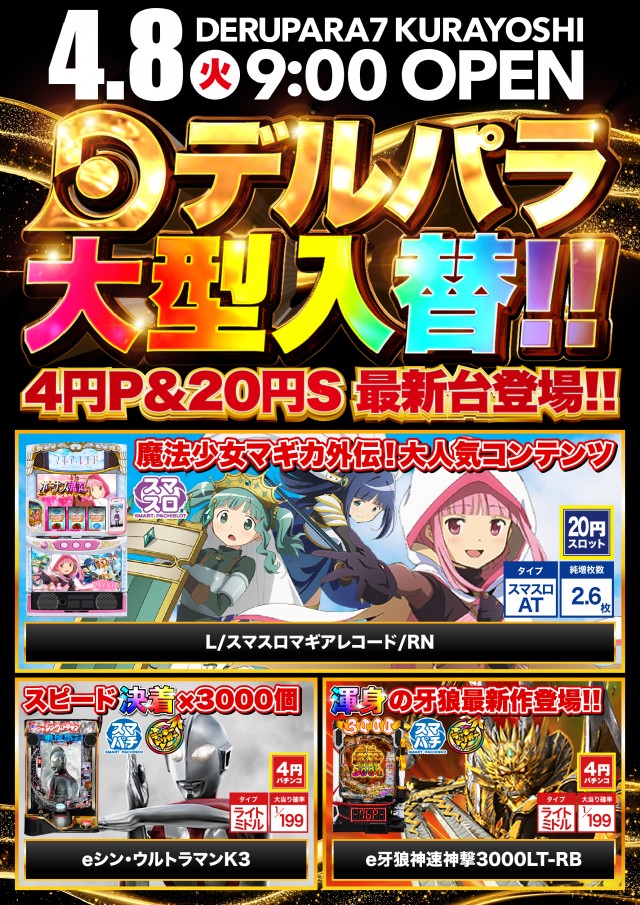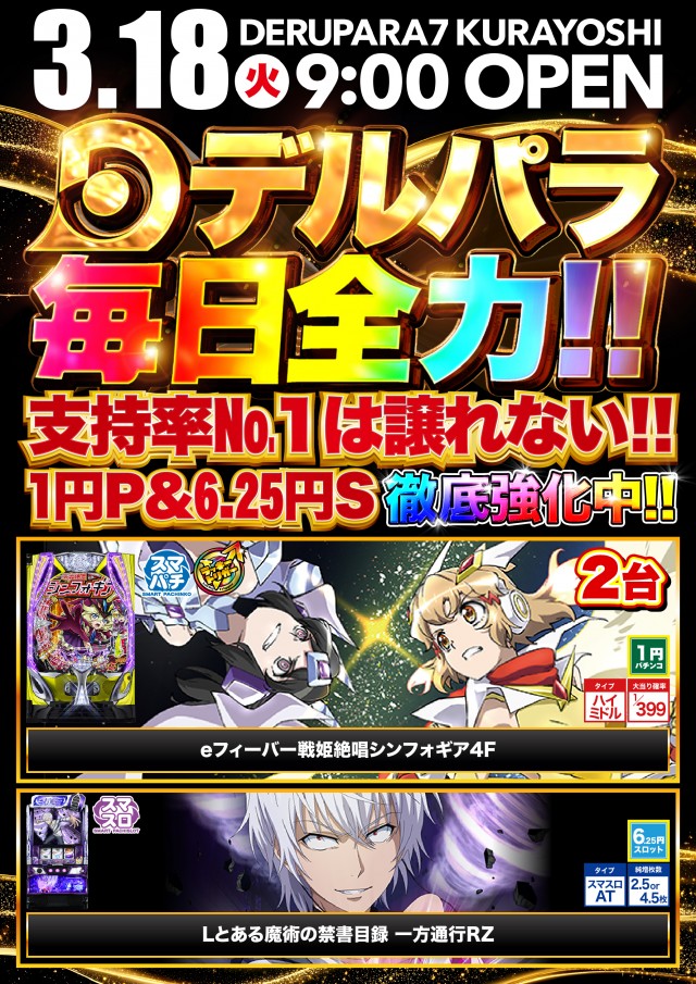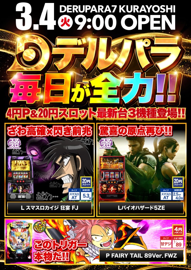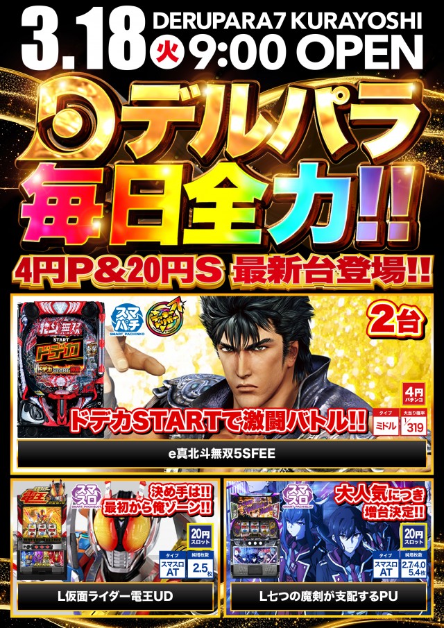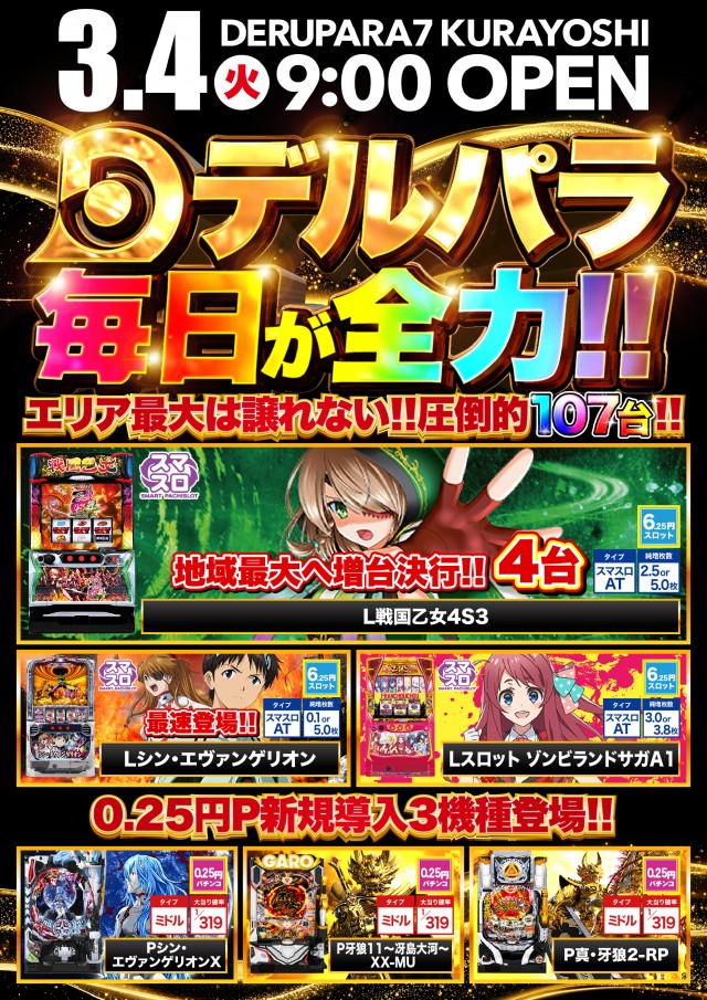 3/27(木)全館朝9時開店!!デルパラ7倉吉店の力!!