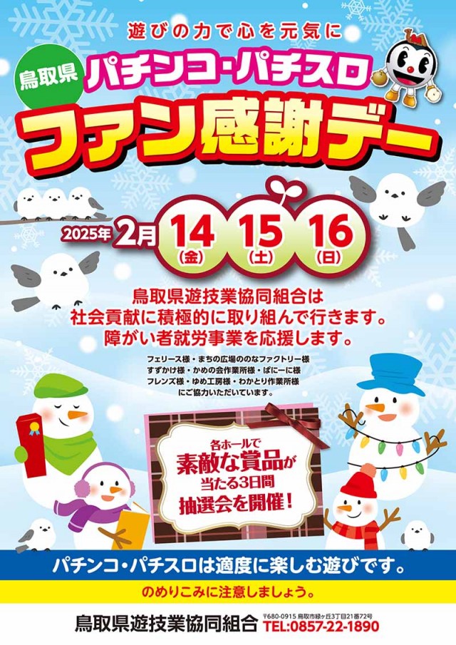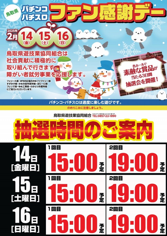 2/14(金)~16(日)鳥取県ファン感謝デー開催!!