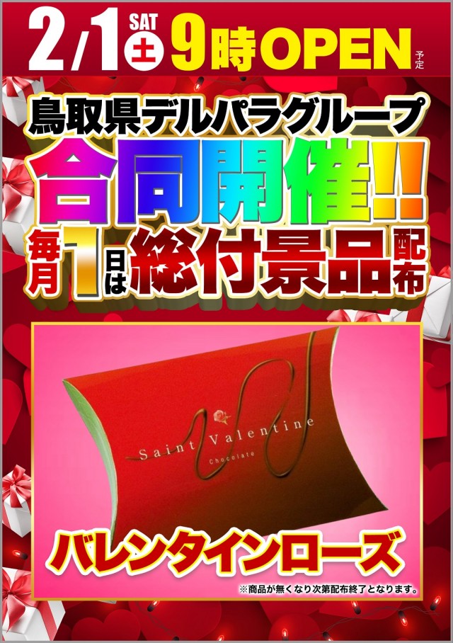2/1(土)朝9時開店!!毎月1日は総付景品配布!!
