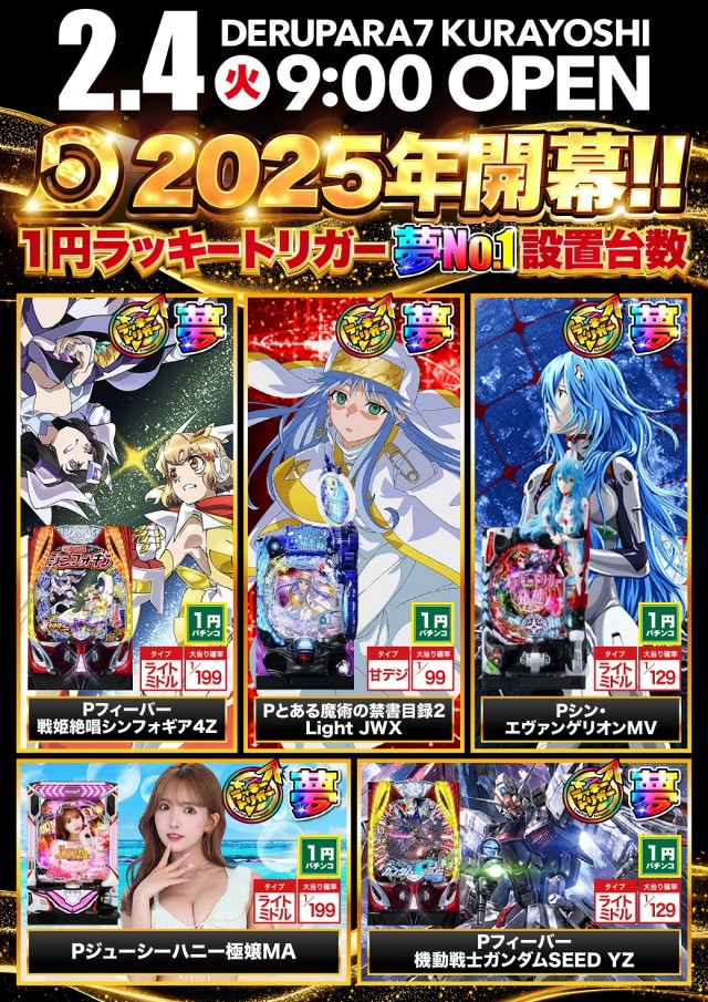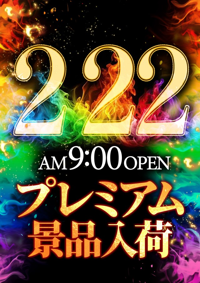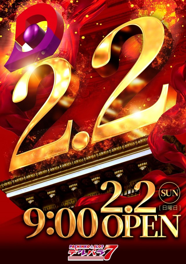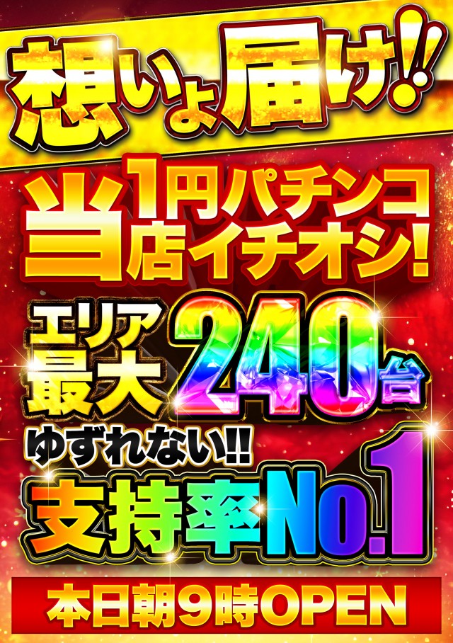 2/2(日)朝9時開店!!1パチ地域最大級240台設置!!