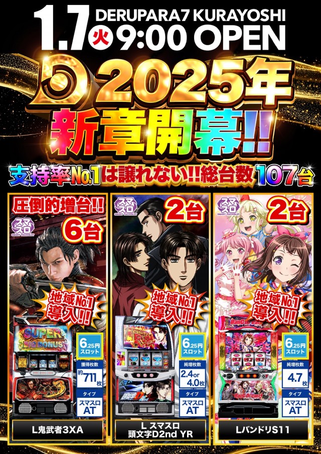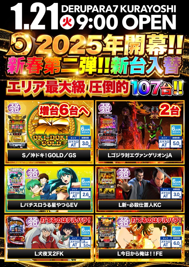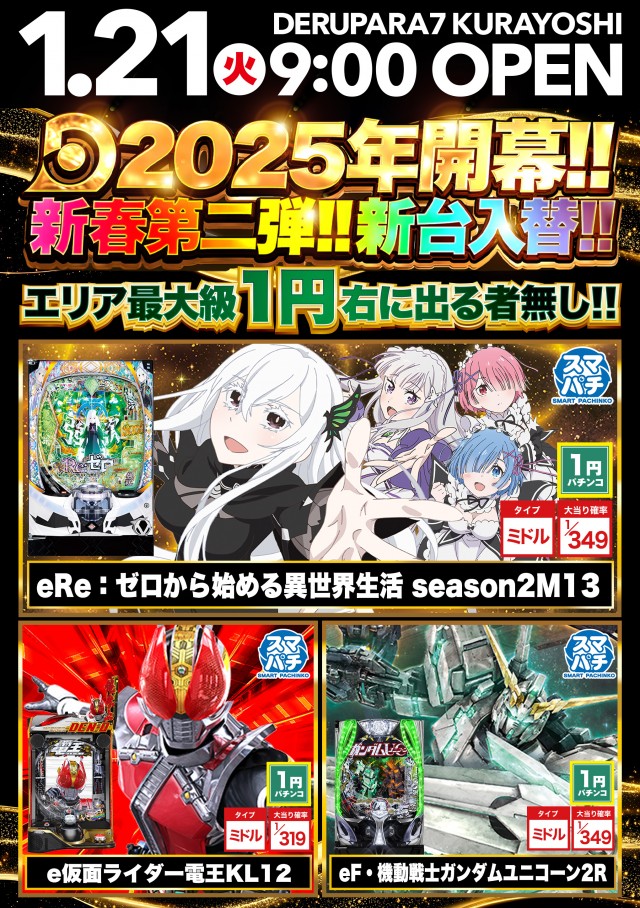 1/7(火)新台入替!!朝9時開店!!