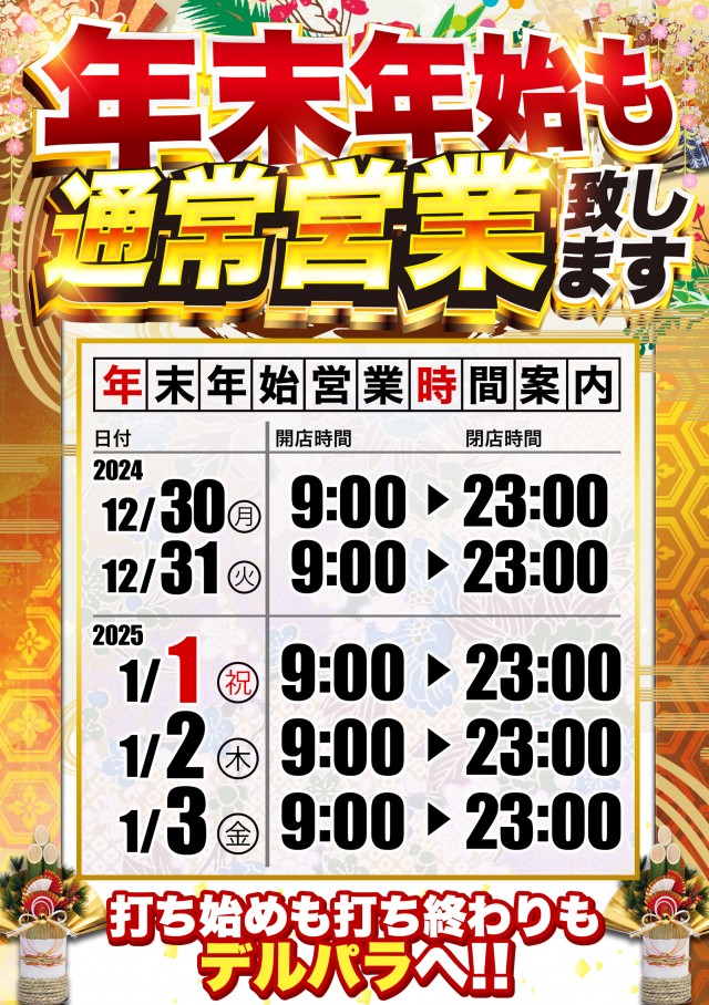 年末年始もデルパラ!!朝9時~夜23時フル営業!!