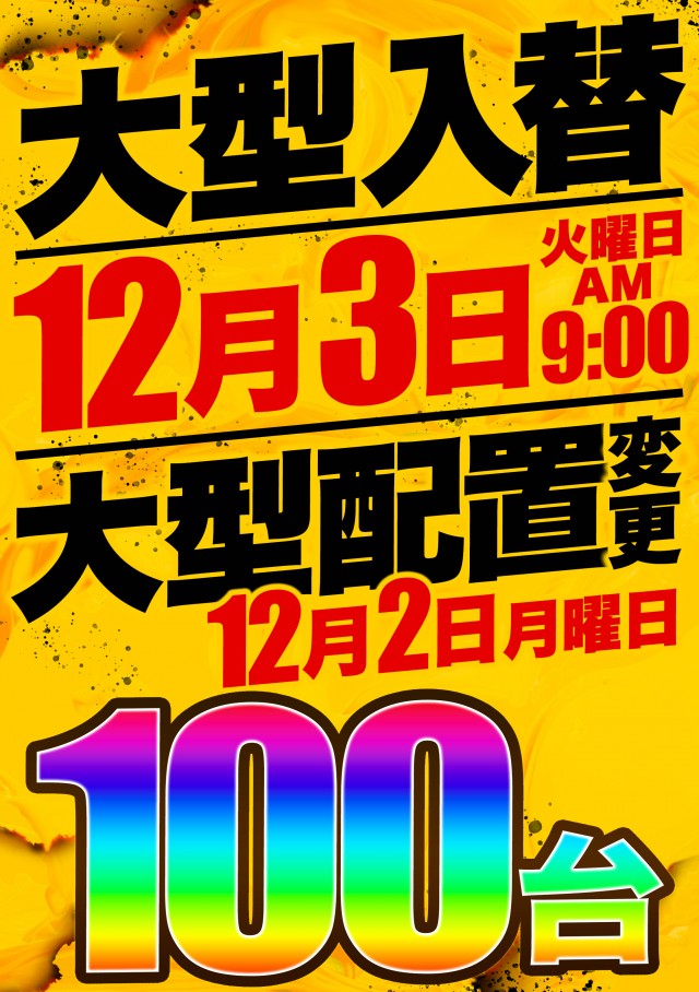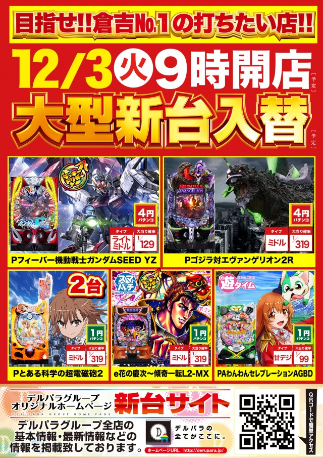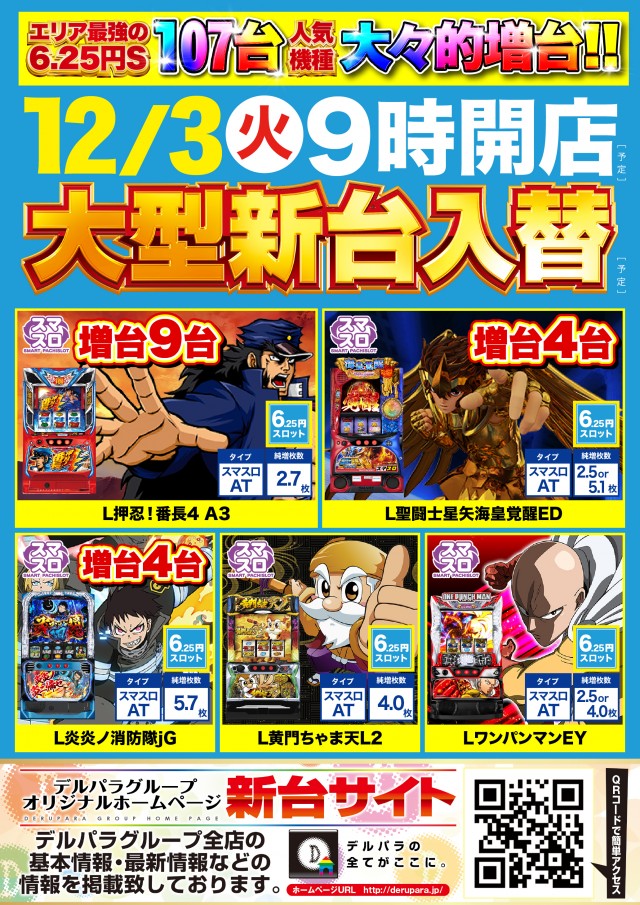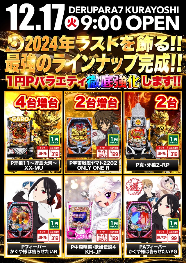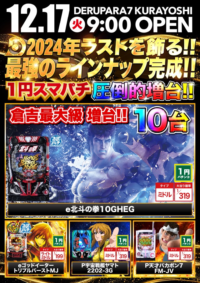 12/12(木)!県下最大4,174台”戦”全店一斉9時開店