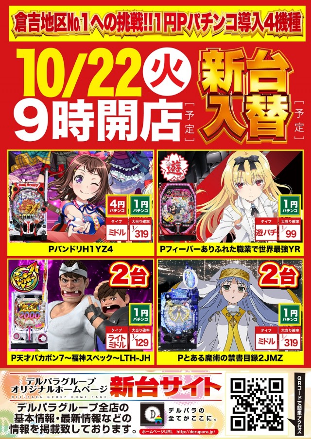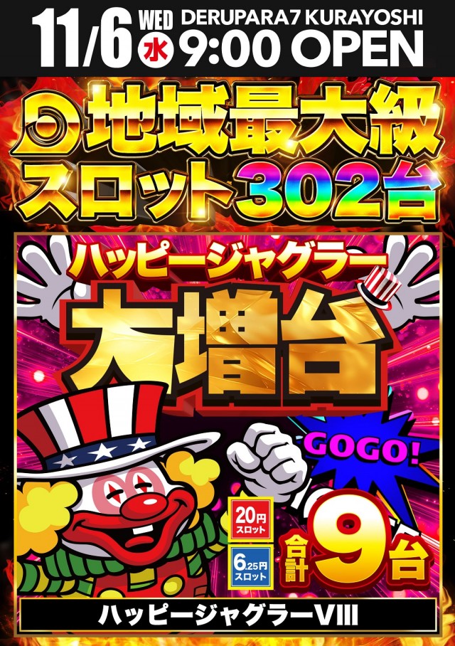 10月26日9時開店!!倉吉スロットNo1設置302台!!