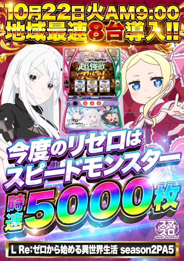 10月22日9時開店!!スマスロRe:ゼロ2 8台導入!!