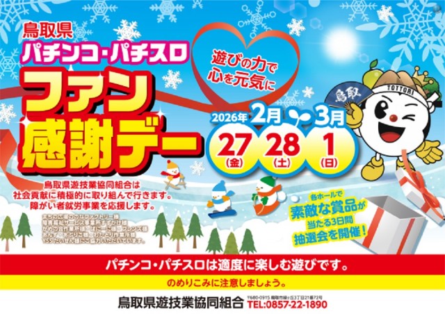 明日から3日間 鳥取県パチンコパチスロファン感謝デー予定!