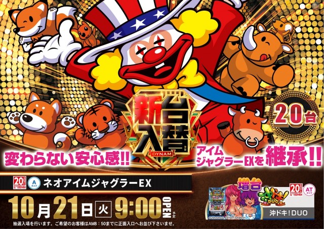 本日新台入替予定 ネオアイムジャグラー【20台】他、計6機種