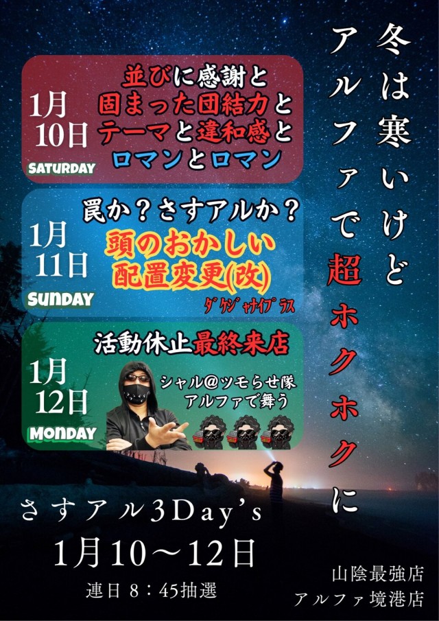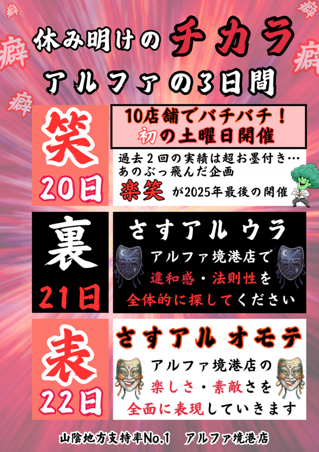 いよいよ明日13日(土)スタート!規格外アルファの3日間🌈