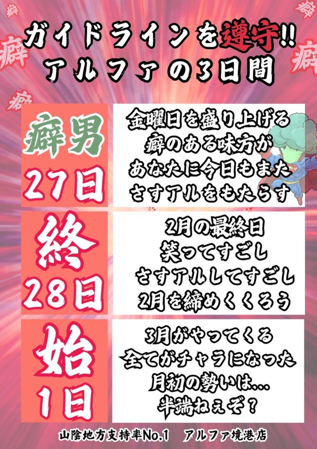 連休最終日の23日(祝)も!アルファで楽しもう🌈