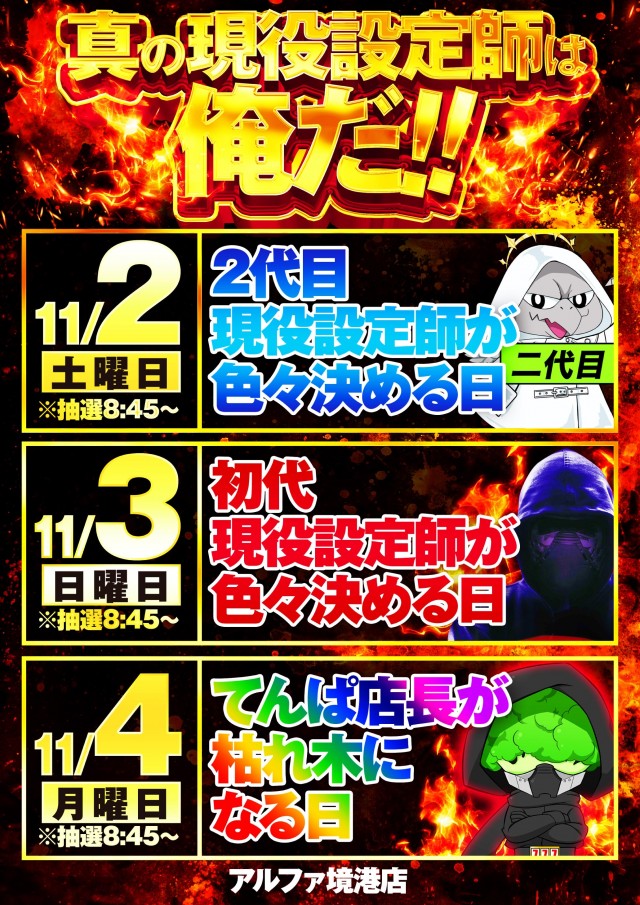 今週末のお知らせ『真の現役設定師は俺だ!!』