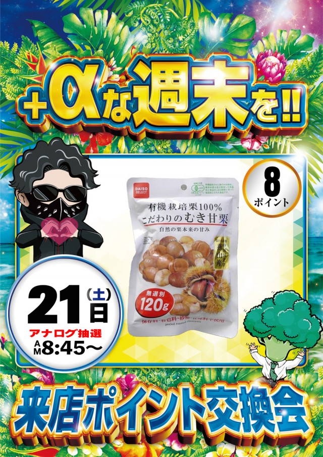明日、21日土曜日は『来店ポイント交換会』🌈朝8時45分抽選