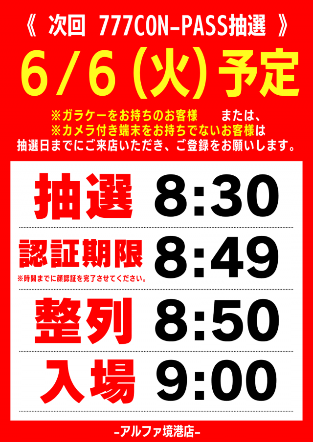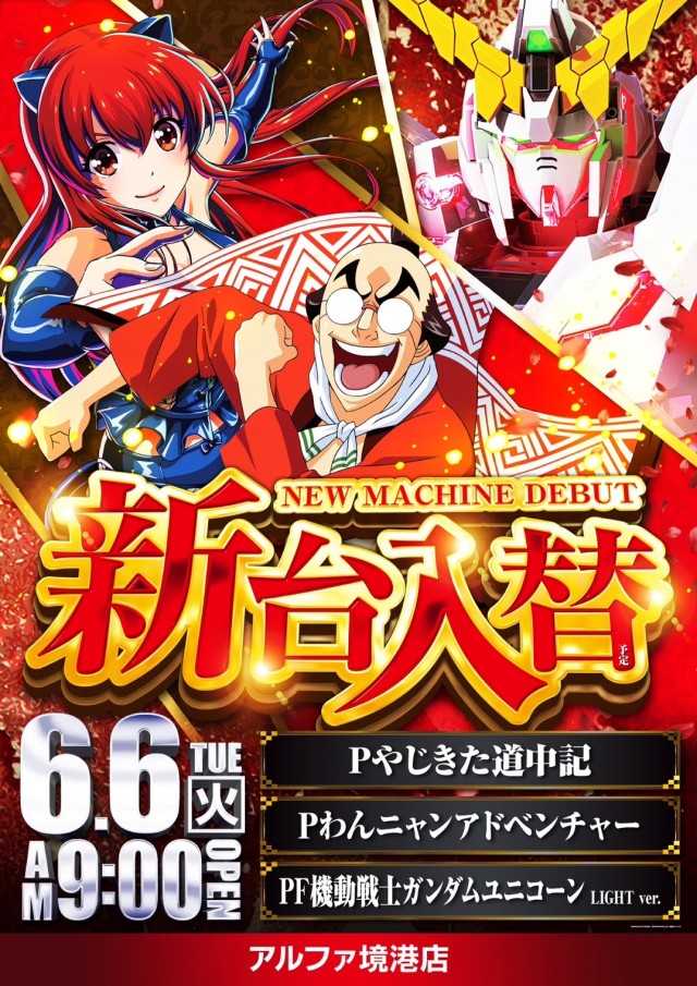 6/6(火)新台入替(抽選)のご案内&特別景品入荷予定!!