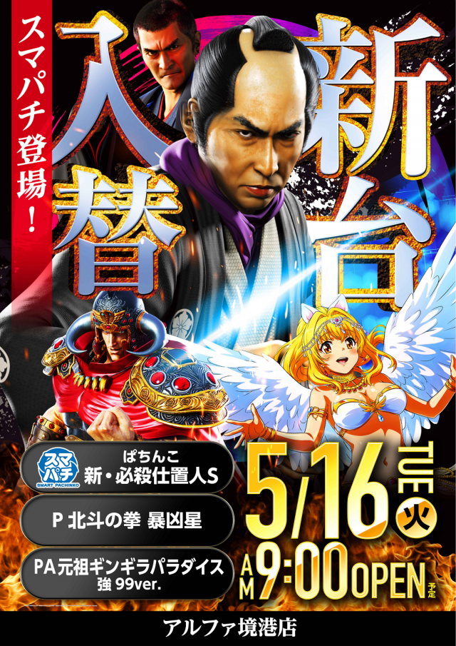 5/16(火)新台入替《スマスロ&スマぱち》最新台登場!!