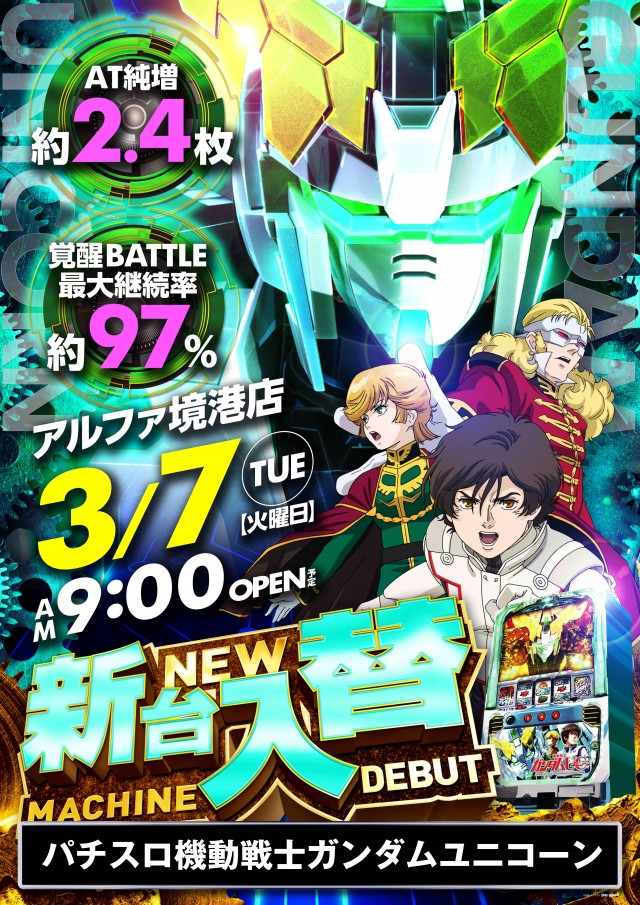 新台【パチスロ ガンダムユニコーン】大好評稼働中!!