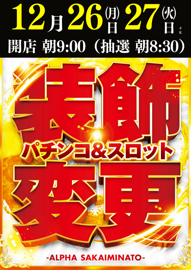 12/27(火)【 装飾変更】このあと、8:30~抽選開始!