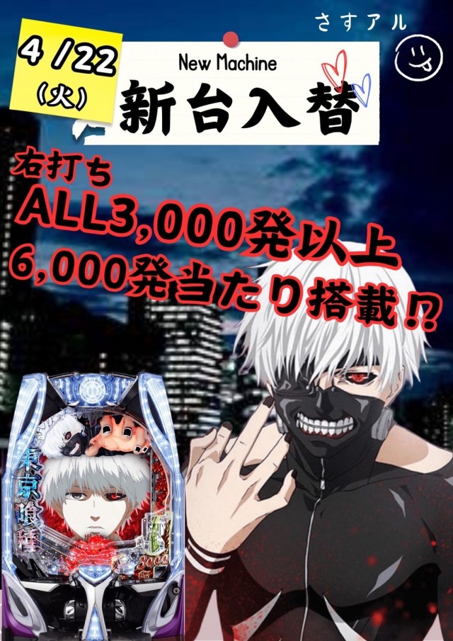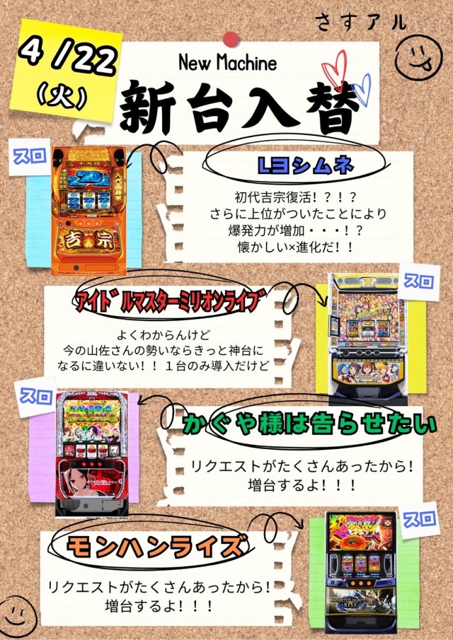 明日は新台登場!朝9時開店🌈