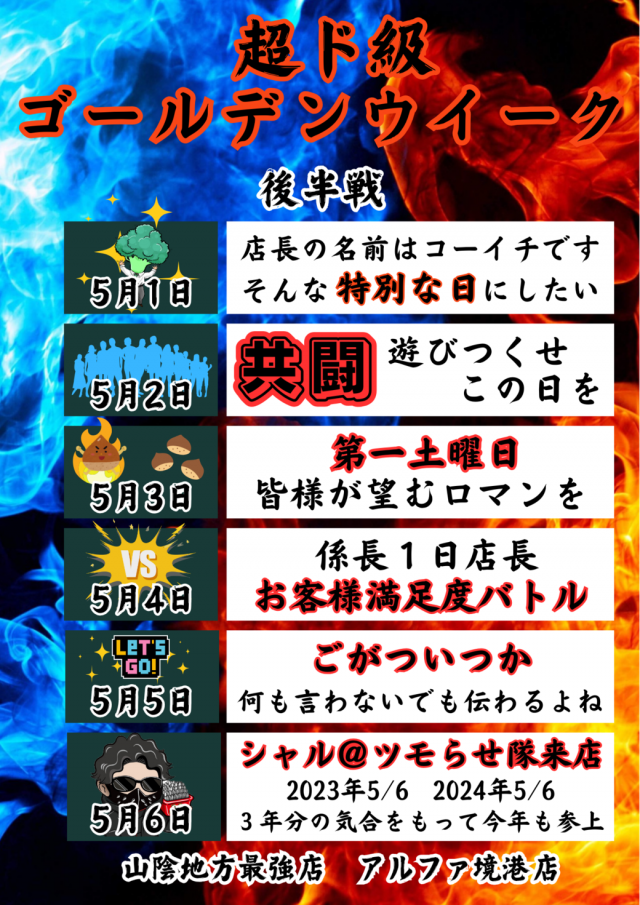 【GW後半戦】スタート!5/1とは、!!
